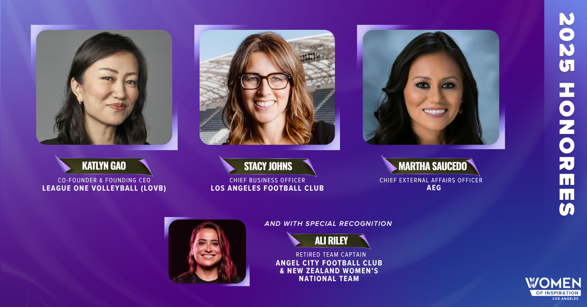 Los Angeles, California: The Los Angeles Chapter of Women in Sports and Events (WISE LA) proudly unveils its 2025 Women of Inspiration honorees: Katlyn Gao, Co-Founder, Founding CEO and Board Member, LOVB; Stacy Johns, Chief Business Officer, Los Angeles Football Club; and Martha Saucedo, Chief External Affairs Officer, AEG; with special recognition for Ali Riley, Retired Team Captain, Angel City Football Club and New Zealand Women’s National Team, for their outstanding leadership, impact and contributions to the sports industry.